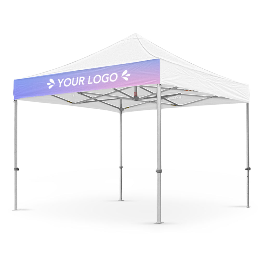 Package Includes: Fully Printed Roof, Marquee Frame, Wheeled Carry Bag, Tie Down Ropes, and Steel Pins.