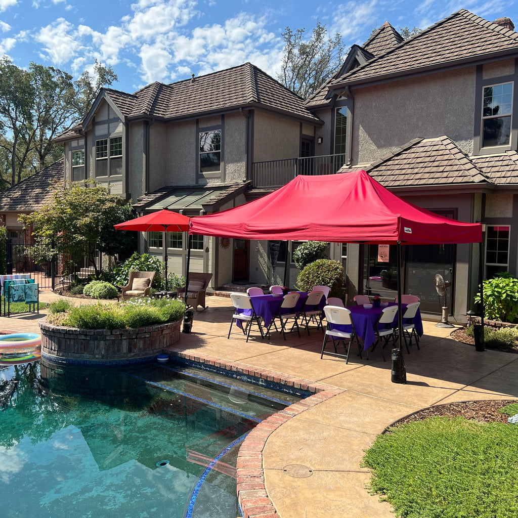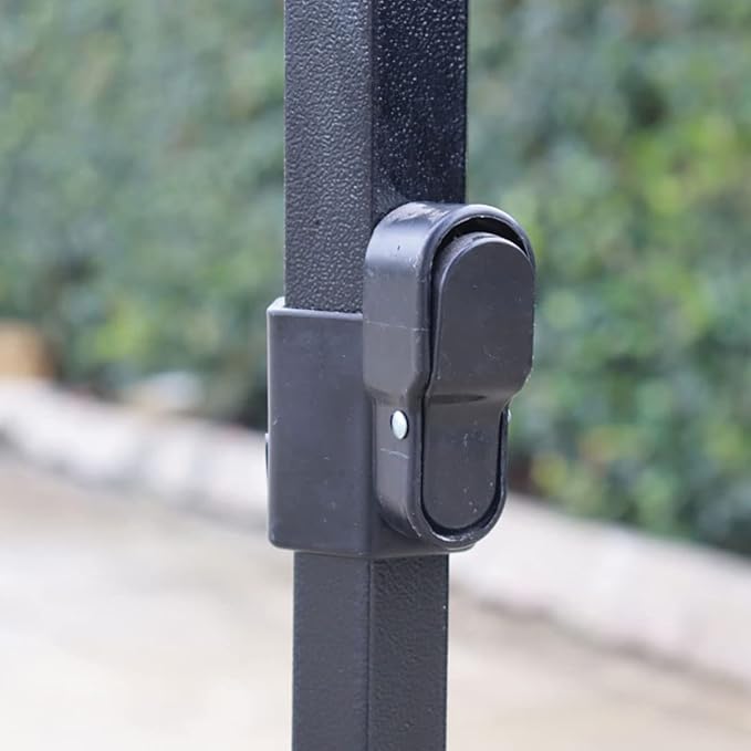 Package Includes: Marquee Frame, Polyester Roof Fabric, Wheeled Carry Bag, Tie Down Ropes, and Steel Pins.