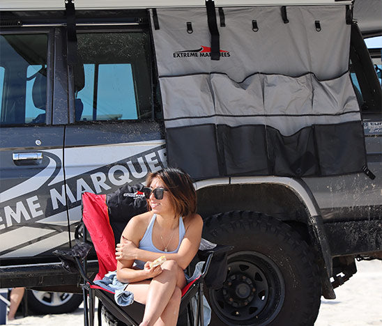 The Awning Organiser is an additional accessory compatible with all Extreme Marquee Car Awnings. It simply slides into the sail track system on each awning mount. The Organiser features multiple pockets and other hanging points to store many item and keep them easily accessible when out and about. Upgrade your awning with this handy hanging Awning Organiser.